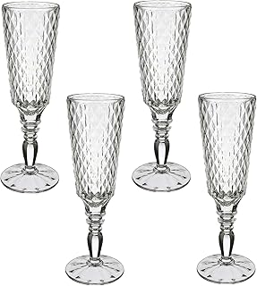 Villeroy & Boch 11-7319-8130 Villeroy & Boch-Boston Flare Lot de 4 flûtes à champagne en cristal avec motif losanges extravagants, grande surface de rangement, passe au lave-vaisselle