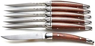 LAGUIOLE Coffret 6 couteaux Laguiole haut de gamme Manche en bois exotique Couteaux plein soie acier inox trempé 13% épaisseur de 2,5 mm, polissage intégral Mitre et culot en inox massif Abeille relustrée mécaniquement Dos guilloché Manche en bois exotique