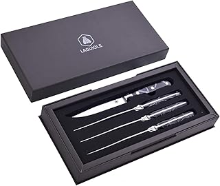Lou Laguiole LOUIS Set de couteaux à steak tranchants, couteau à steak Laguiole, dans une boîte en bois avec couvercle, accessoire barbecue pour homme cadeau
