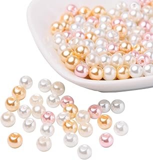 PandaHall Environ 200pcs Perle Nacrée 6mm Perles en Verre Perle Ronde pour Bracelet Collier Bijoux, Couleur Mélangée, Trou: 1mm