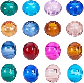 PandaHall- 100pcs Perles en Verre Europeenne 15x10mm Perles à Gros Trous, Rondelle, Mixte Couleur, Trou: 5mm