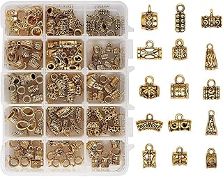 PandaHall Elite - Environ 150pcs 15 Styles Pendentifs en Perles d'or Antiques,150pcs Pendentif Charm Cintres Perles pour la Fabrication de Bijoux de Pendentif Bracelet