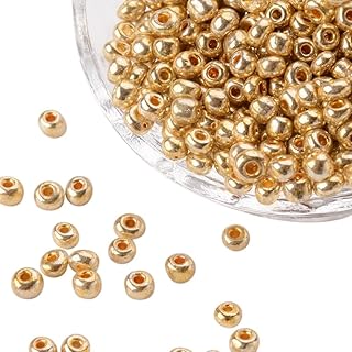 PandaHall- 8/0 Placage Electrolytique Perles de Rocailles en Verre, Couleur Or, Taille: Environ 4mm de diametre, 2.5mm d'Epaisseur, Trou: 1mm, Environ 450g