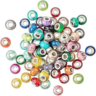 PandaHall Environ 100pcs Couleur Assortie résine Grand Trou rondelle Perles européennes avec des noyaux de Laiton de Ton Argent pour la Fabrication de Bijoux,Facette,Trou: 5mm
