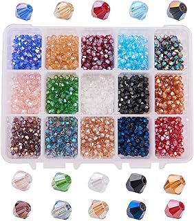 PandaHall Elite - Environ 1560 Pcs 15 Couleurs Perles de Verre à Facettes 4mm Perle Bicone Plaqué de Couleur AB, Trou: 1mm