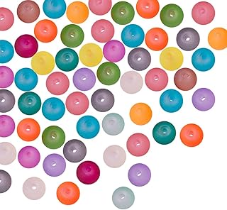 PandaHall- Lot de 5 Poche Perles Givrees Transparents en Verre Rondes, Couleur Melangee, 6-7x6mm, Trou: 1mm, Environ 100pcs/poche