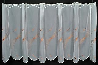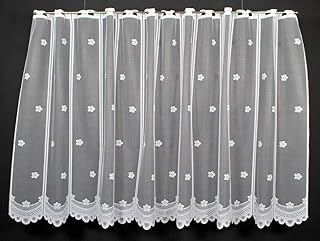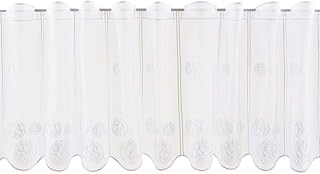 Rideaux Brise-bise n avec Fleur 90 cm de Haut | Vous Pouvez Choisir la Largeur des Rideaux par paliers de 14 cm | Colour: Blanc | Rideaux Cuisine