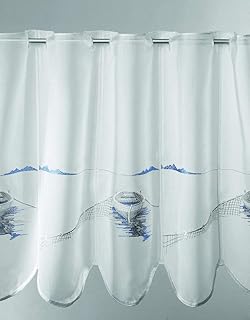Rideaux Brise-bise avec Bateau de pêche 45 cm de Haut | Vous Pouvez Choisir la Largeur des Rideaux par paliers de 32 cm | Colour: Blanc; Bleu; Gris | Rideaux Cuisine