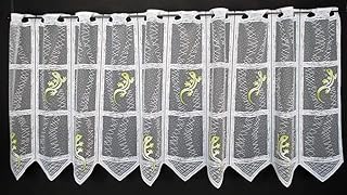 Rideaux Brise-bise avec Gecko 60 cm de Haut | Vous Pouvez Choisir la Largeur des Rideaux par paliers de 16 cm | Colour: Blanc Vert | Rideaux Cuisine