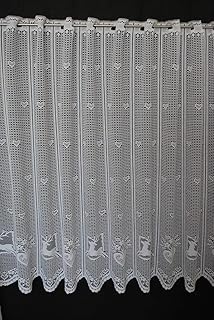 Rideaux Brise-bise avec des Cerfs et Le c?ur 90 cm de Haut | Vous Pouvez Choisir la Largeur des Rideaux par paliers de 25 cm | Colour: Blanc | Rideaux Cuisine