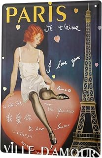 LEotiE SINCE 2004 Plaque en Métal Métallique Poster Mural tin Sign Rétro Signe Métropole Madame de Paris Tour Eiffel Coeur