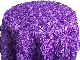 Liveinu Nappe de Table à Fleurs 3D Rosettes Satin Ronde et Rectangulaire Chemin de Table pour Mariage Fête Gâteau Cérémonie Décorations Banquet de Mariage Expositions 120x180cm Violet