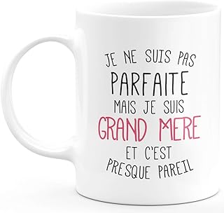 Mug pour Grand Mere - Je ne suis Pas Parfaite mais Je suis Grand Mere - Cadeau Humour idéal Anniversaire - Céramique - Blanc