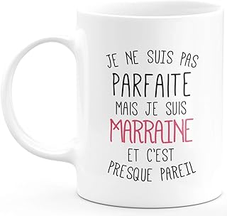 Mug pour Marraine - Je ne suis Pas Parfaite mais Je suis Marraine - Cadeau Humour idéal Anniversaire - Céramique - Blanc