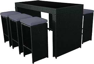 Happy Garden Mange Debout PILAT en résine tressée Noir 6 Places - Coussins Gris