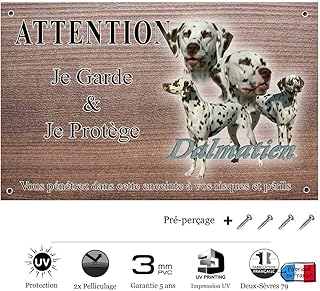 Pets-Easy.com Attention Chien de Garde personnalisée Dalmatien - pré perforée et vis fournies. De 30 cm à 15 cm…