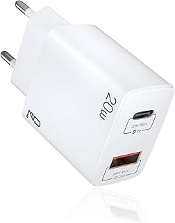 NEUE DAWN 20W Chargeur Rapide USB C, Secteur Mural 2 Ports QC 3.0 USB c Power Delivery, Adaptateur Secteur d’Alimentation pour Smartphones Huawei Téléphones Mobiles Tablettes Samsung Galaxy Blanc