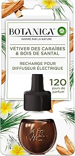 Air Wick Botanica Désodorisant Maison Diffuseur Electrique + 1 Recharge d'Huile Essentielle de Vétiver/Bois de Santal 19 ml