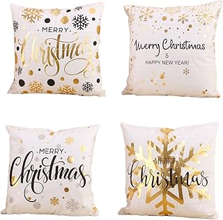 Hoomall Lot de 4 Housses de Coussin Decoratif Lit Linge Coton Oreiller Maison Décor Taie d'oreiller pr Sofa Style Noël 45x45cm (#1, 45x45cm)