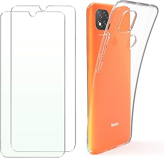 SMYTU Coque Xiaomi Redmi 9C Transparente +2 Verre trempé écran Protecteur, Souple TPU Housse Étui de Protection Absorption de Choc avec Coin Renforcé Bumper Cover pour Xiaomi Redmi 9C -Trasparente