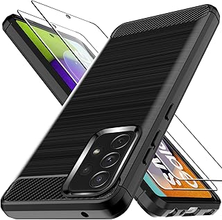 LK Coque Compatible avec Samsung Galaxy A52 4G/5G -2 × Verre Trempé Protection écran, Protection Complète Flexible en TPU Brossé Housse Bumper Case- Noir Slim Fit