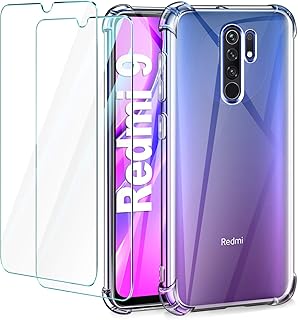 Leathlux Coque Xiaomi Redmi 9 Transparente avec 2 Verre trempé Protection écran, Souple Silicone Antichoc Bumper étui Protecteur Housse TPU Case Cover Coque pour Xiaomi Redmi 9
