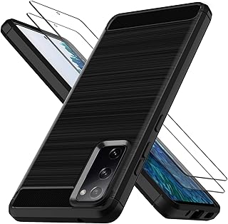 LK Coque Compatible avec Samsung Galaxy S20 Fe 4G/5G -2 × Verre Trempé Protection écran, Protection Complète Flexible en TPU Brossé Housse Bumper Case- Noir Slim Fit