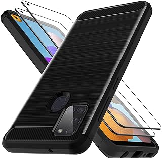 LK Coque Compatible avec Samsung Galaxy A21s -2 × Verre Trempé Protection écran, Protection Complète Flexible en TPU Brossé Housse Bumper Case- Noir Slim Fit