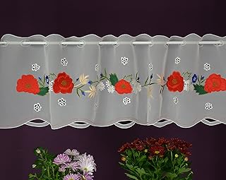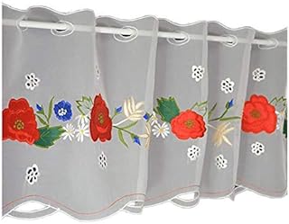 Hossner Rideau brise-bise motif coquelicot - Rideau court - Style maison de campagne - 50 x 150 cm - Blanc/rouge