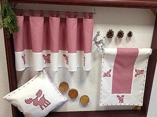 Rideau brise-bise au point de croix Motif cerfs Rouge 45 x 115 cm sur batiste naturel COUNTRY CHIC Panneau maison de campagne Noël Rideau bistro certifié Öko-Tex Type 506