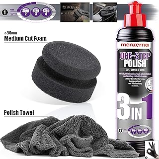 detailmate Menzerna kit de polissage 1000 250 ml, avec les tampons de polissage assortis : 150 mm, avec chiffon de polissage en microfibre douce