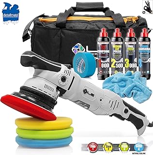 Detailmate Kit de polissage - Liquid Elements T2000 V3 Exzenter Polisseuse + Kit de Menzerna : Control Cleaner HC1000, MC 2500, FF 3000, cire de carnauba + 4 tampons + ruban 3M + chiffon de polissage